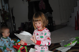 Santa found our house and the kids must have been good...well most of the time:) Rogan got a tickle me Elmo, Cora got Minnie Mouse Dishes and Kendal got an American Girl Doll (well close it is a next generation Doll:) We had an amazing Christmas. We spent all of Christmas day at home in our PJS!